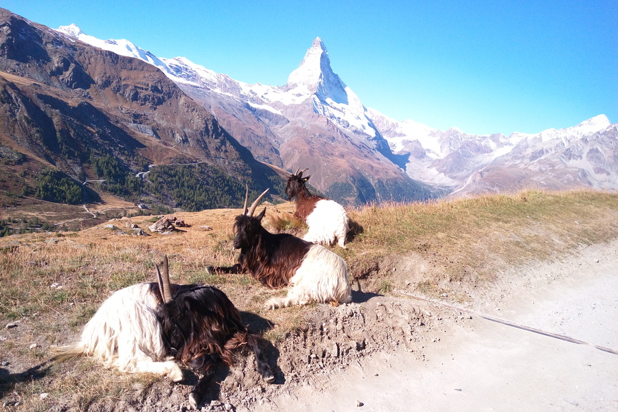歐洲最高的露天齒軌鐵路列車從策馬特出發駛往陽光燦爛的高納葛拉特觀景平台,這座觀景平台全年開放,海拔高度達3089米。高納葛拉特依偎在29座海拔4000米以上雄偉山峰(包括巍峨的馬特宏峰和杜富爾峰)的懷抱中,擁有阿爾卑山區第三大冰川,迷人的景色一定會令遊客流連忘返。馬特宏峰是瑞士引以爲傲的象徵。(德語:Matterhorn;義大利語:Cervino;法語:Cervin),也稱切爾維諾峰,是阿爾卑斯山脈中最著名的山峰。位置在瑞士、義大利邊境,附近是瑞士瓦萊州小鎮策馬特和義大利奧斯塔谷大區的小鎮布勒伊-切爾維尼亞(Breuil-Cervinia)。馬特洪峰的名稱是由德語「Matt」(意為草地)和「Horn」(意為角,或呈錐狀像一隻角一樣的山峰)組成。